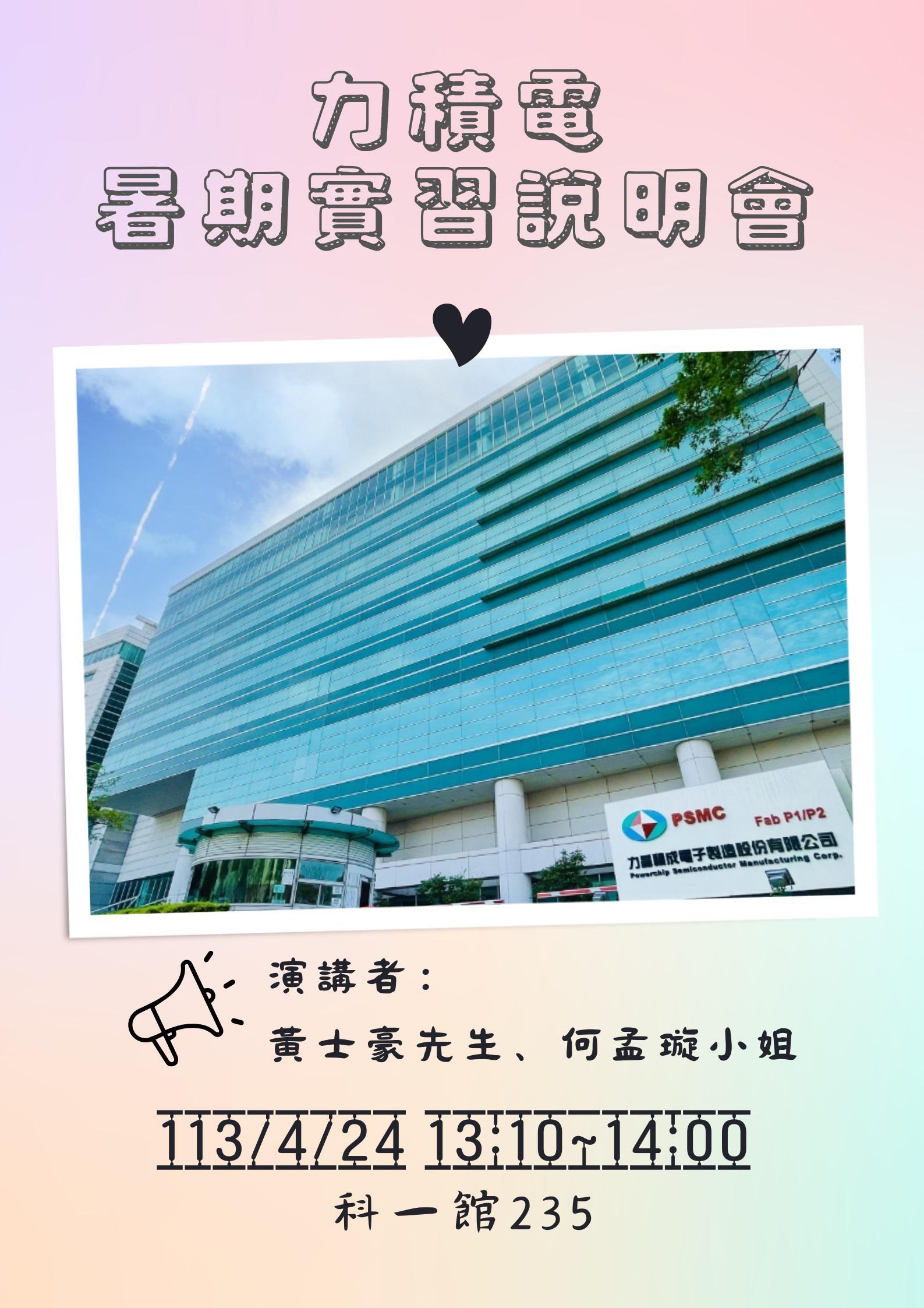 112-2自我探索系列活動-力積電暑期實習說明會