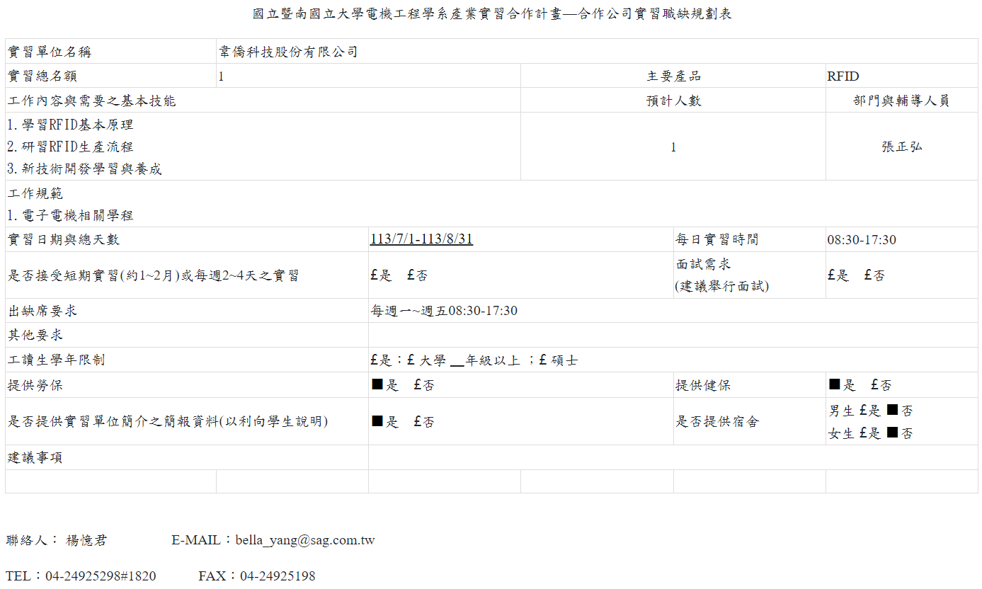 轉知:韋僑科技股份有限公司暑期實習資訊