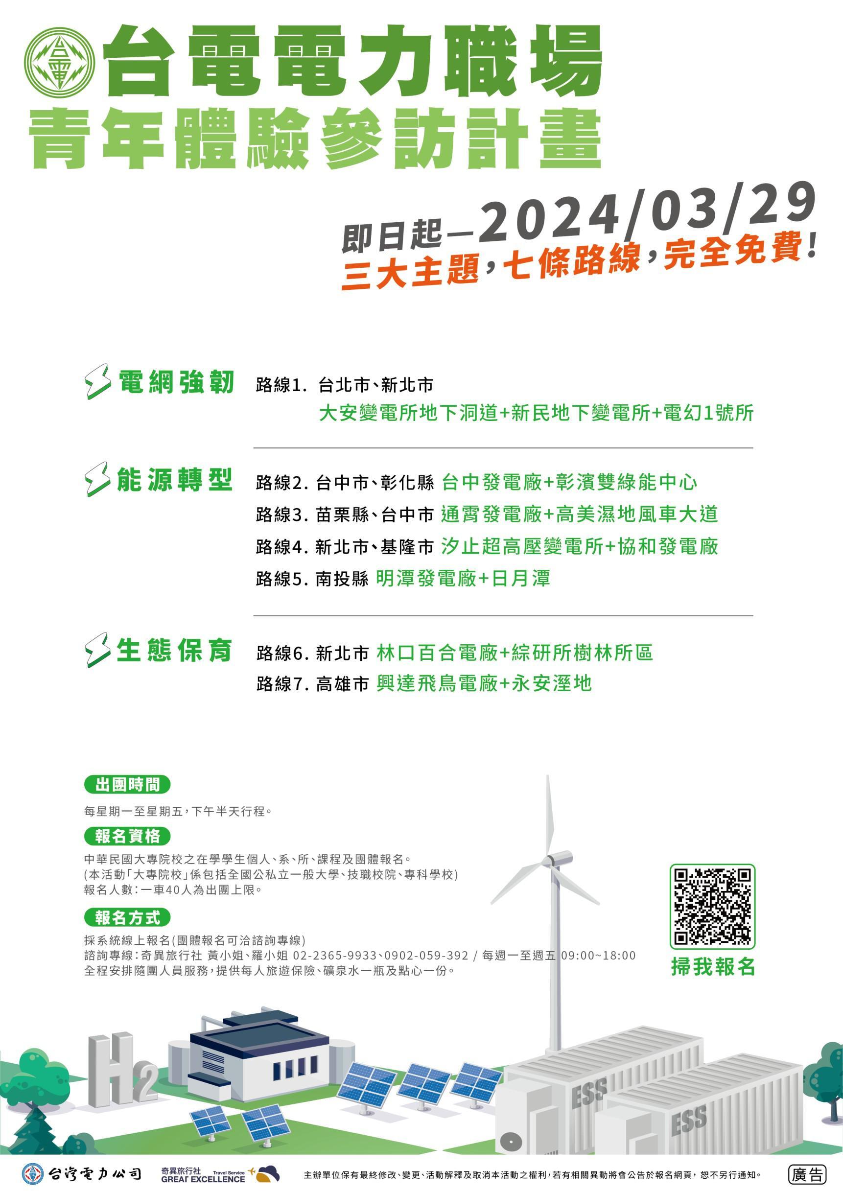 轉知:台灣電力公司「電力職場青年體驗參訪」訊息