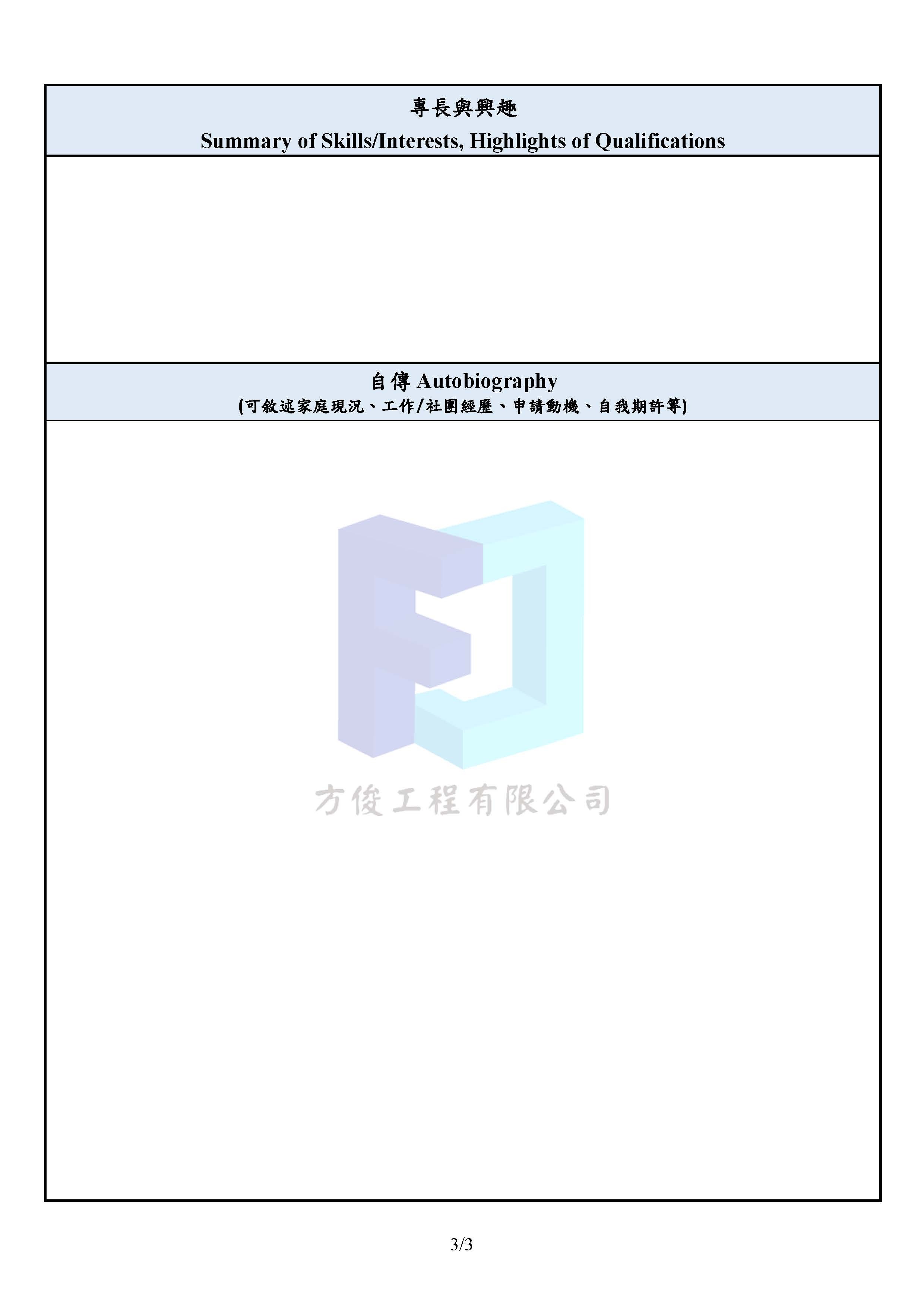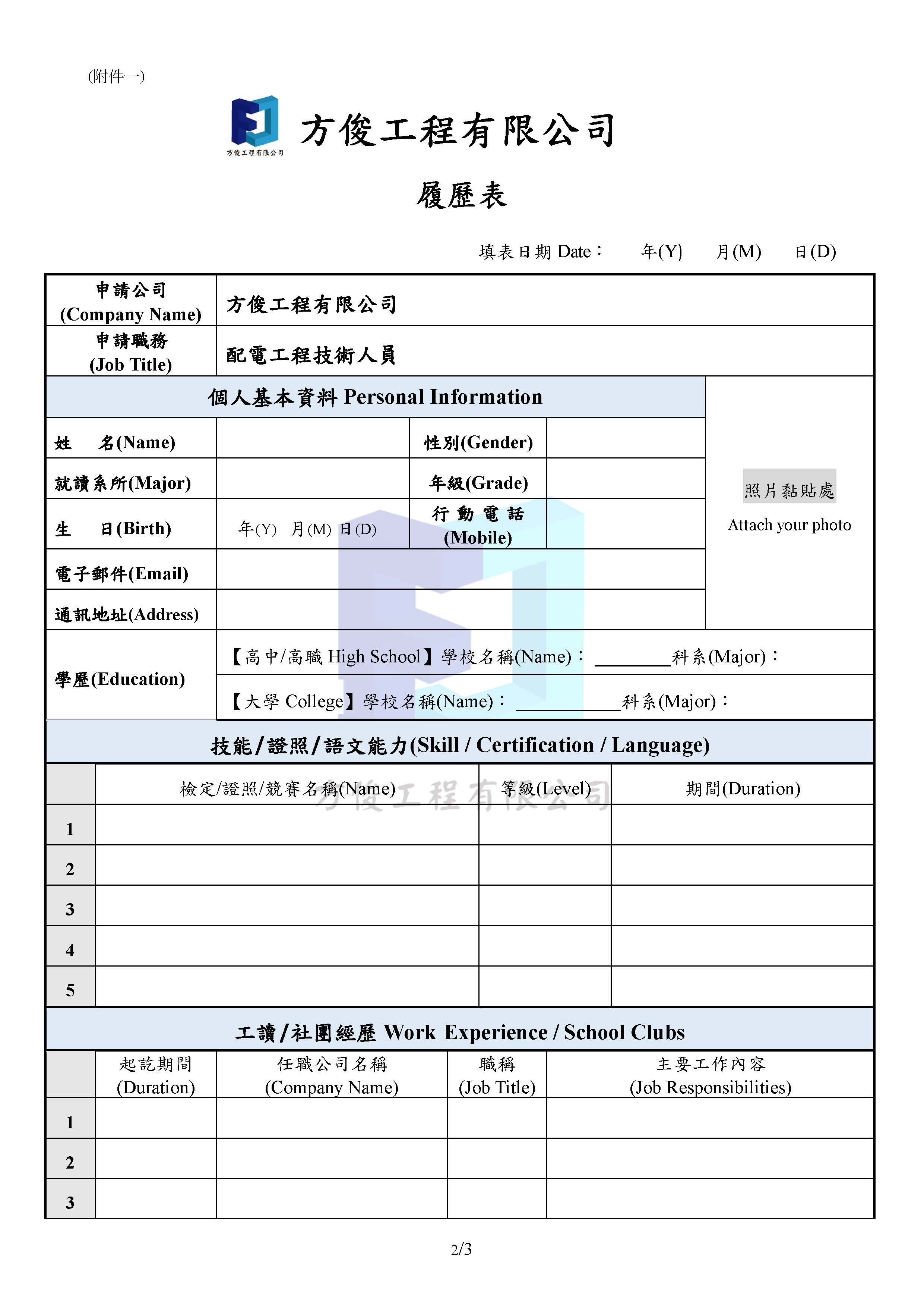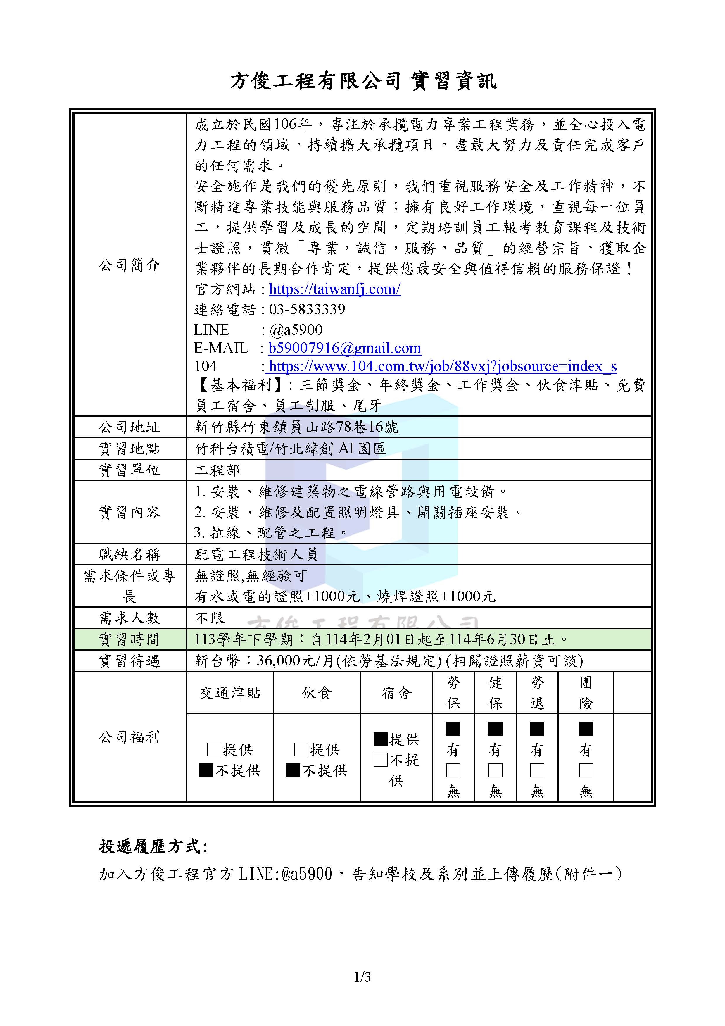 轉知:方俊工程有限公司 實習資訊