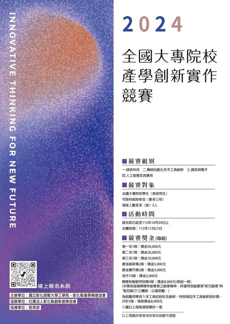 轉知:2024全國大專院校產學創新實作競賽